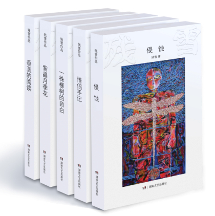 由湖南文藝出版社首次結(jié)集出版的“殘雪作品”是著名作家、中國當(dāng)代文學(xué)先鋒派代表人物殘雪于2003-2013年間創(chuàng)作的全部短篇小說,共推出五種——《情侶手記》《侵蝕》《一株柳樹的自白》《紫晶月季花》《垂直的閱讀》,集中呈現(xiàn)了殘雪作品濃郁的先鋒意味和獨特的文學(xué)情懷。