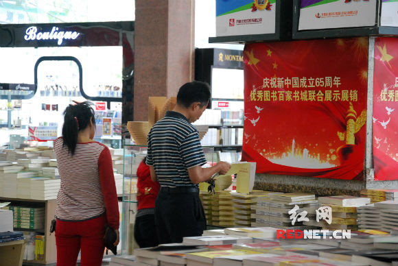 國慶長假期間,湖南新華書店延長了營業(yè)時間,以專臺專柜的形式開展慶祝新中國成立65周年優(yōu)秀圖書聯(lián)合展示展銷活動,為祖國65周年華誕增添了一抹書香。