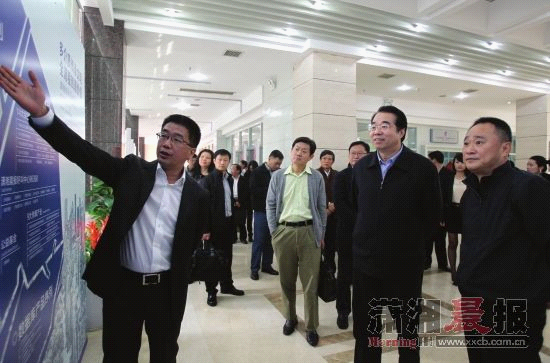 許又聲部長(右二)在龔曙光董事長(右一)陪同下視察瀟湘晨報(bào)