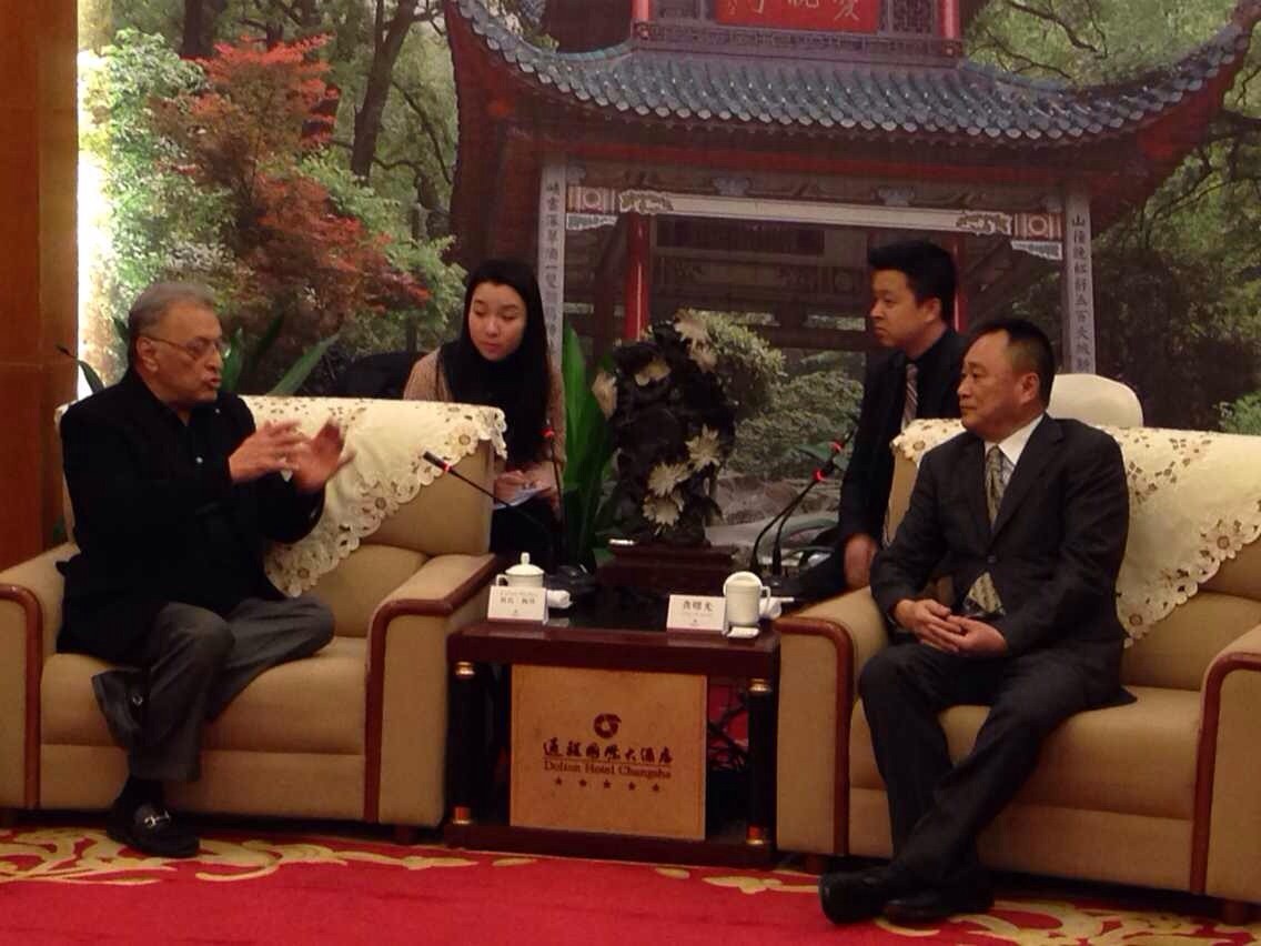 在音樂(lè)會(huì)舉行之前,湖南出版投資控股集團(tuán)黨委書(shū)記、董事長(zhǎng),中南傳媒董事長(zhǎng)龔曙光與祖賓·進(jìn)行了會(huì)見(jiàn)。由于行程匆忙,在走進(jìn)會(huì)見(jiàn)廳時(shí),梅塔并沒(méi)有隨身攜帶名片。面對(duì)這個(gè)享譽(yù)世界的“貴客”,龔曙光董事長(zhǎng)自然不以為意,笑言,“梅塔先生已經(jīng)不需要名片了,因?yàn)槟鷮?duì)于音樂(lè)的理解和追求,把您的名字化成了一個(gè)世界能夠接受的音樂(lè)符號(hào)。”