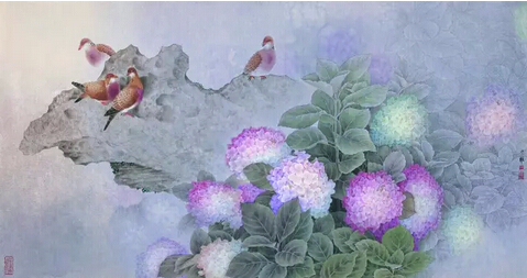 縱覽歷史長河,歷數(shù)中華遺產(chǎn),工筆花鳥為奇葩一枝,立科于唐,成熟于五代,極盛于北宋,歷代傳承延續(xù)。其以特有藝語,映大自然花鳥草蟲及人之精神情感,悠然呈現(xiàn)中華民族傳統(tǒng)文脈與文化底蘊(yùn)。歷代花鳥畫大家精妙絕倫的筆墨,令人目愉心悅,頓生慕意。余雖少小孤貧,業(yè)無專攻,卻也無師涂鴉,從北宋花鳥入手,眼追手摹,數(shù)臨不倦,乃知窮工極妍之寫實(shí)畫風(fēng);后追現(xiàn)代諸家,得于非闇之嚴(yán)謹(jǐn),陳之佛之古雅,劉奎齡之真切,鄒傳安之精微……時(shí)涉林步圃、勤寫細(xì)觀,遂成今作。余力求師法自然,承古出新,染中華之葩彩。