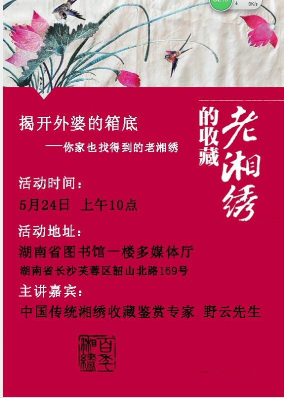 近日,湖南省圖書館迎來了一場名為“你家也找得到的老湘繡”文化沙龍活動,由中國傳統(tǒng)湘繡收藏鑒賞專家野云先生,帶領(lǐng)大家揭開湘繡百年來的神秘面紗,現(xiàn)場有多件精美的湘繡作品讓大家大飽眼福,現(xiàn)場氣氛十分熱烈?;顒又?,湖南科學(xué)技術(shù)出版社向湖南省圖書館贈送了《老湘繡的收藏》,讀者們可以在圖書館閱覽該書的精彩內(nèi)容。