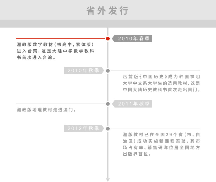 作為在國家新一輪課程改革背景下成立的專業(yè)化營銷公司,承擔著集團擁有自主知識產(chǎn)權的國家新課程標準實驗教材(教參、教輔)及相關多元化產(chǎn)品、湘版圖書在全國范圍內(nèi)的規(guī)?;茝V與服務。
