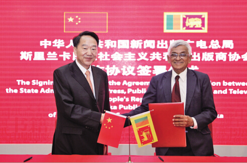中國(guó)國(guó)家新聞出版廣電總局與斯里蘭卡出版商協(xié)會(huì)簽署合作備忘錄。