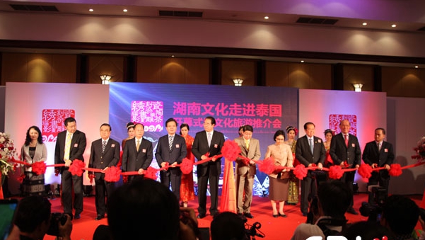 中國駐泰大使寧賦魁表示,2014年是中國—東盟文化交流年,作為交流年活動的一部分,“湖南文化走進(jìn)泰國”充實了中國—東盟文化交流年活動的內(nèi)容,對增進(jìn)湖南與泰國的文化交流與合作將起到積極推動作用。