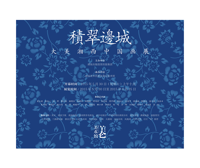 積翠邊城——大美湘西中國畫展,借用沈從文筆下湘西“靈秀樸野”、“積翠堆藍”之語以及“邊城”之湘西代名詞為展覽題目,語義雙關(guān),一方面給予湘西人文自然景觀多姿多彩地賦色,一方面又是藝術(shù)家對湘西人文自然景觀濃墨重彩地藝術(shù)表達。三十一位來自中國湖南的優(yōu)秀中國畫家從湘西原始、靈性、樸野、神秘的人文社會,秀美的自然山水花鳥景觀、蓬勃的現(xiàn)代湘西發(fā)展風(fēng)貌三個方面以中國藝術(shù)傳統(tǒng)概念中的寫意和工筆描繪一個自古以來“水路商務(wù)既不至于受戰(zhàn)爭停頓,也不至于為土匪影響,一切莫不極有秩序,人民也莫不安分樂生”(沈從文語)的原生態(tài)兼容現(xiàn)代的多姿多彩的湘西,并隨同其他九大品類的湖南文化在東盟文化年(2014年)一同走進泰國,展現(xiàn)一個美麗的湘西、美麗的湖南、美麗的中國。