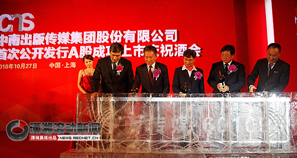 在昨天的酒會(huì)上,中宣部副部長(zhǎng)孫志軍,國(guó)家新聞出版總署副署長(zhǎng)鄔書(shū)林,湖南省委常委、宣傳部部長(zhǎng)路建平,中銀國(guó)際董事長(zhǎng)唐新宇和中南傳媒董事長(zhǎng)龔曙光等一起用熱情的紅酒澆鑄冰雕,宣告中南傳媒正式走向資本市場(chǎng)。